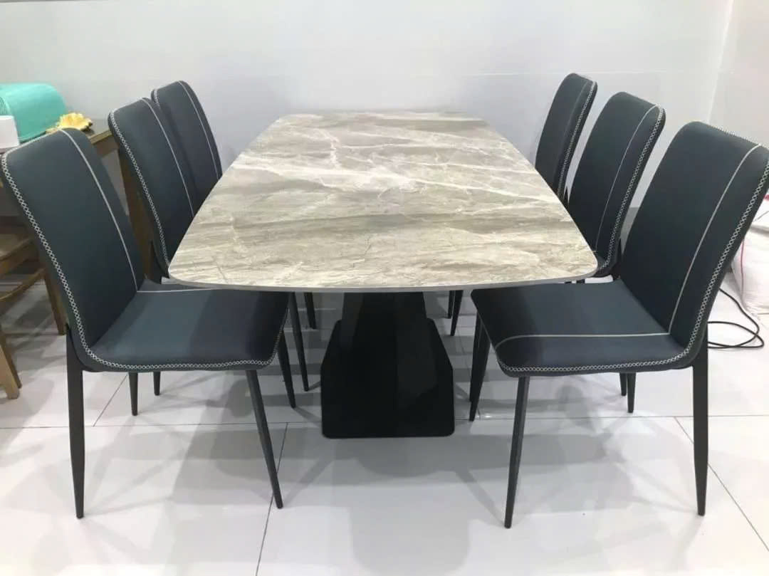 Bộ bàn ăn mặt đá Ceramic chân sắt sơn đen tĩnh điện