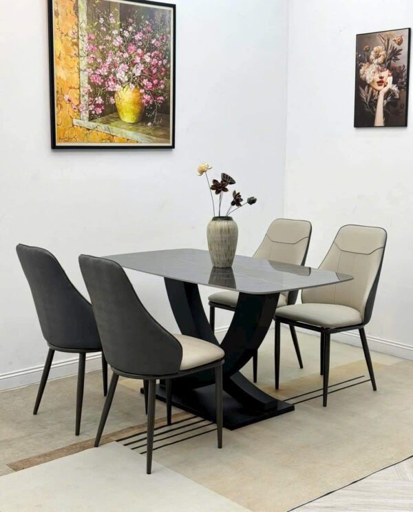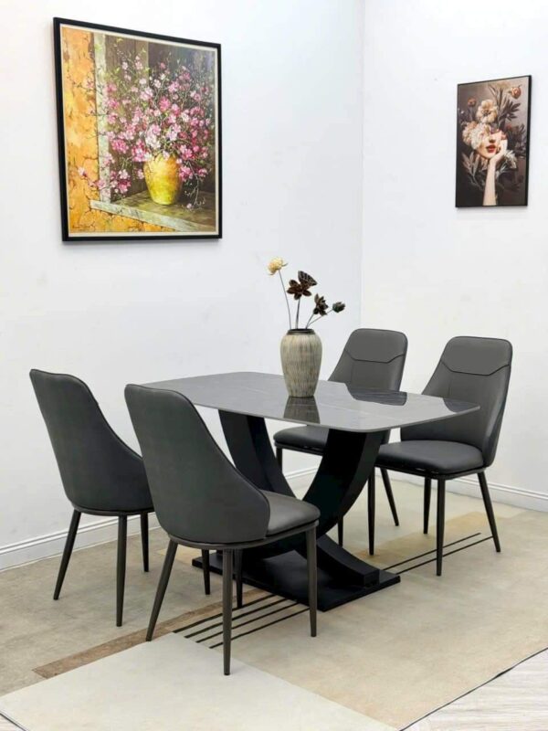 Bộ bàn ăn mặt đá Ceramic chân sắt sơn đen tĩnh điện