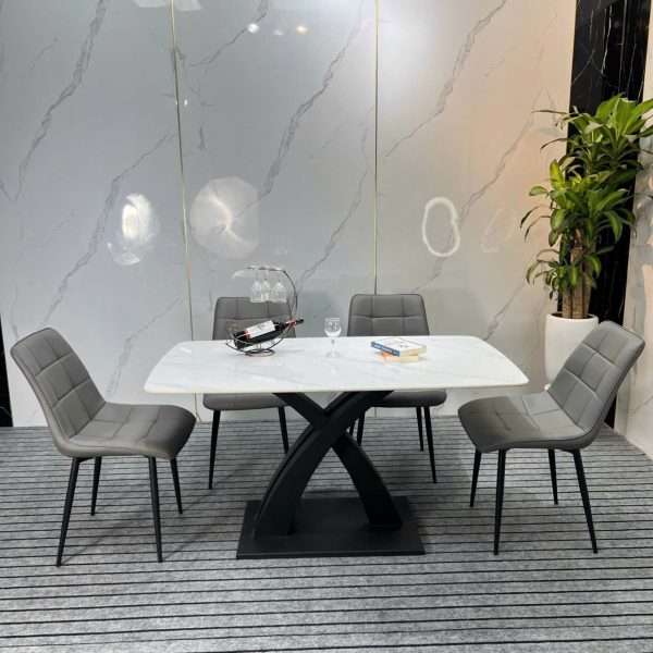 Bộ bàn ăn mặt đá Ceramic chân sắt sơn đen tĩnh điện