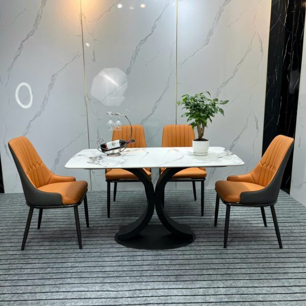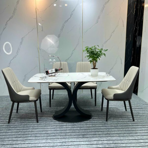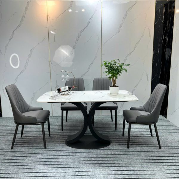 Bộ bàn ăn mặt đá Ceramic chân sắt sơn đen tĩnh điện