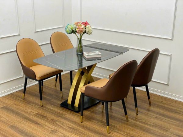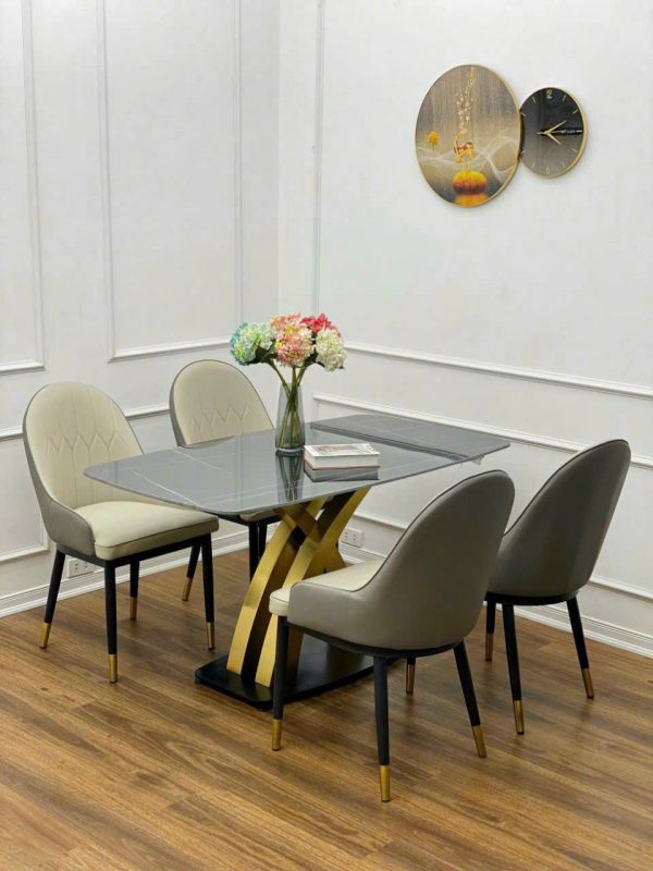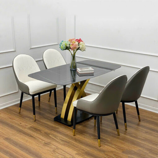 Bộ bàn ăn mặt đá Ceramic chân sắt sơn đen tĩnh điện