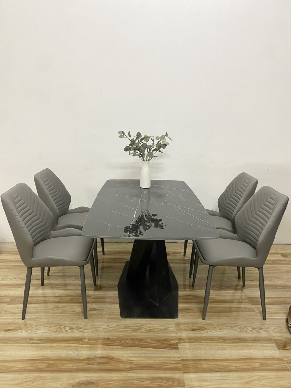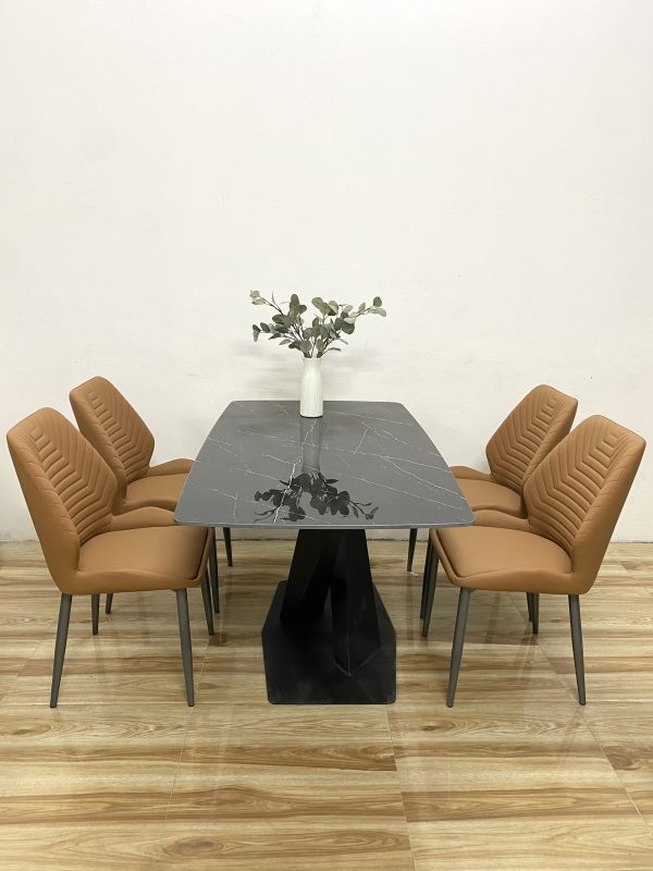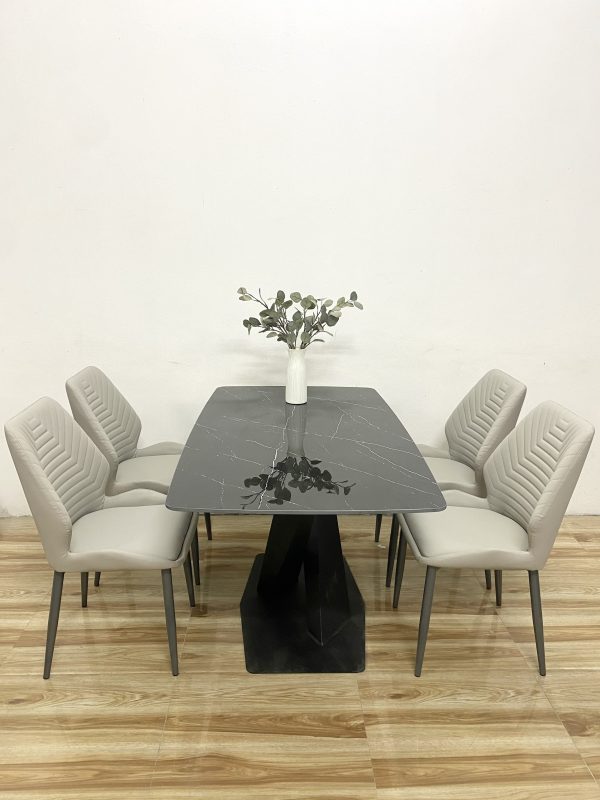 Bộ bàn ăn mặt đá Ceramic chân sắt sơn đen tĩnh điện