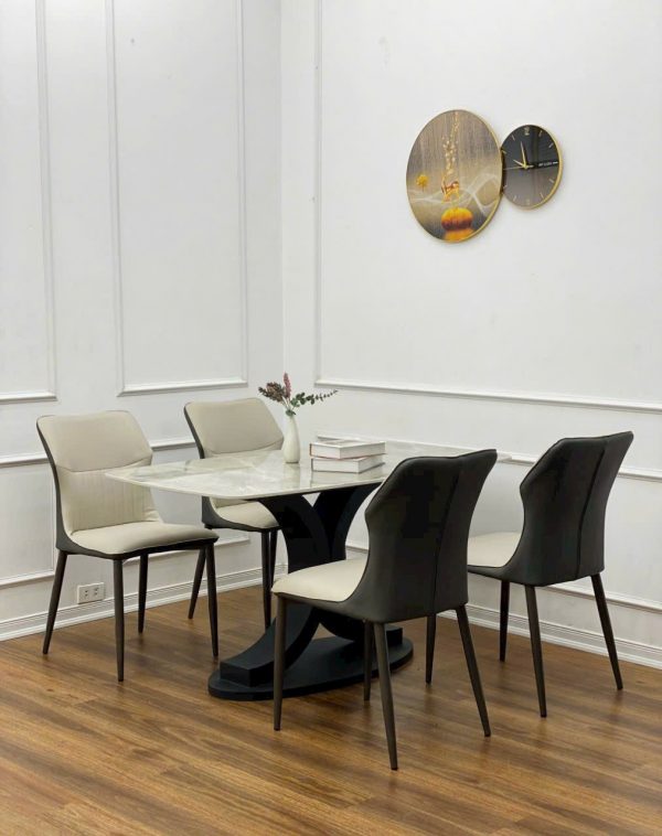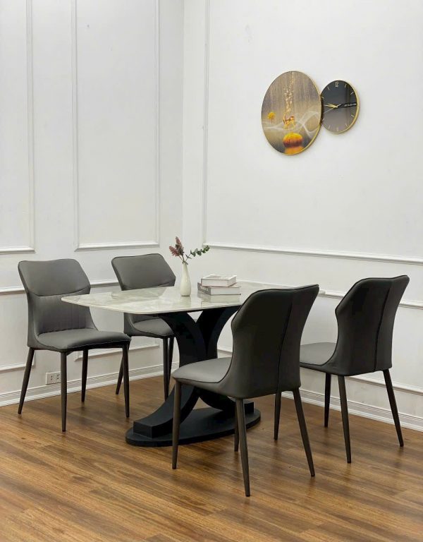 Bộ bàn ăn mặt đá Ceramic chân sắt sơn đen tĩnh điện
