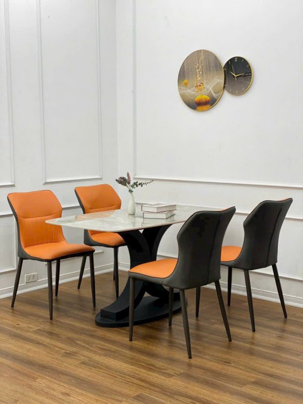 - Ghế ăn bọc da cao cấp ở bề mặt tiếp xúc, chân sắt sơn tĩnh điện