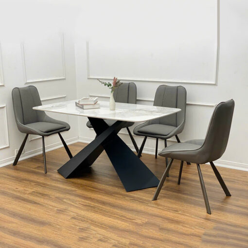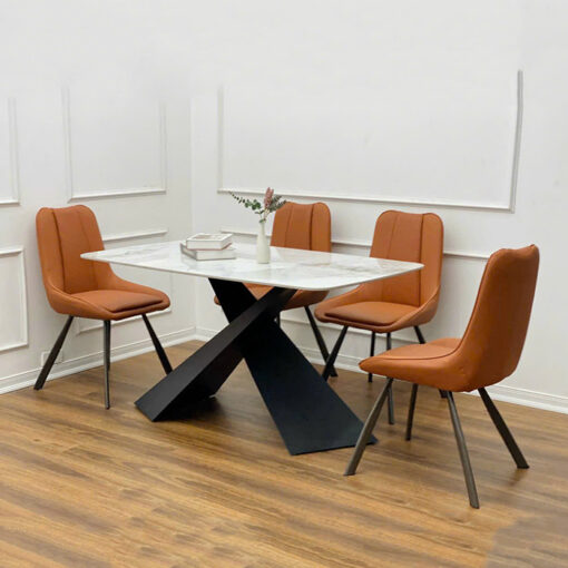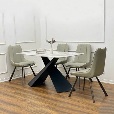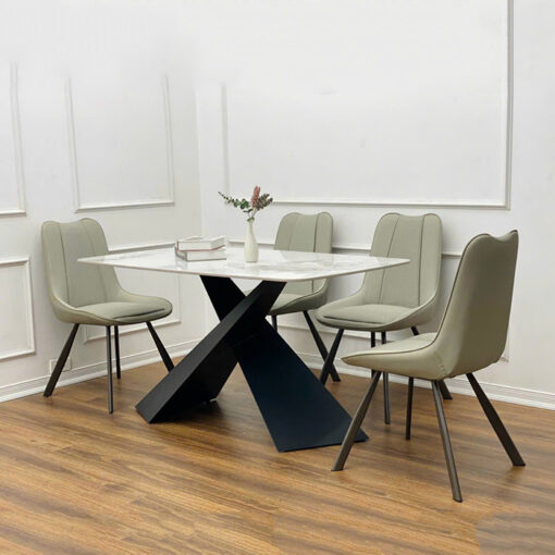Bộ bàn ăn mặt đá Ceramic chân sắt sơn đen tĩnh điện