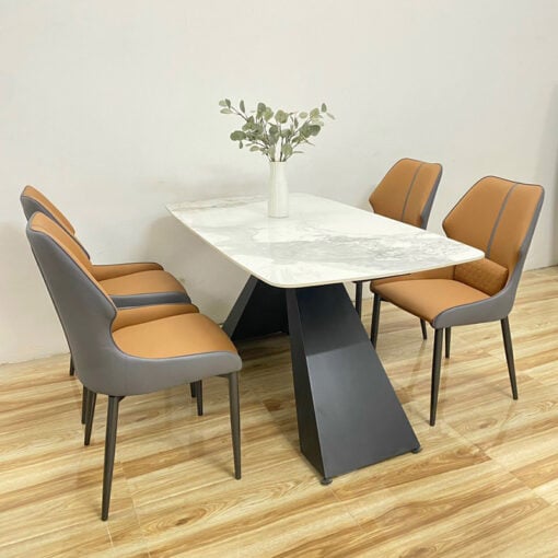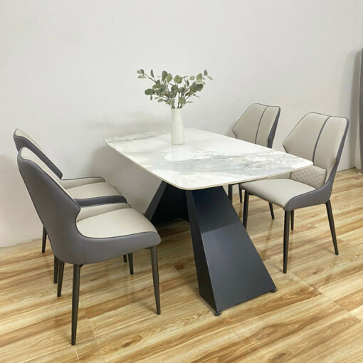 Bộ bàn ăn mặt đá Ceramic chân sắt sơn đen tĩnh điện