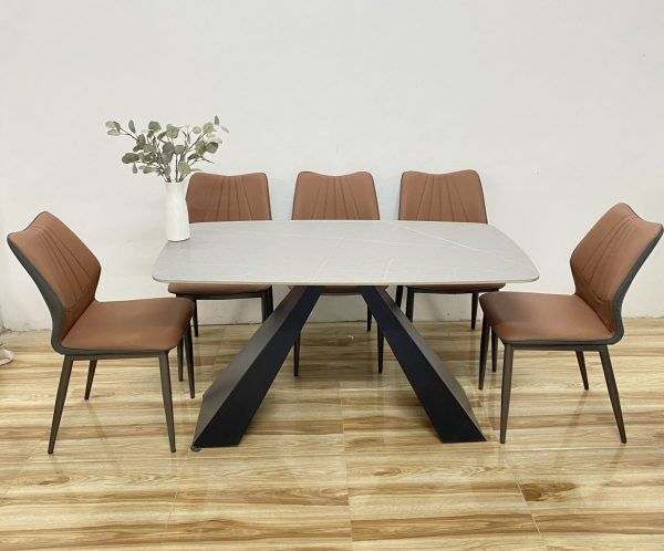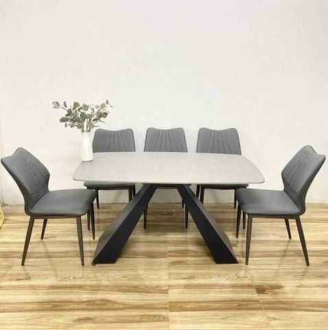 Bộ bàn ăn mặt đá Ceramic chân sắt sơn đen tĩnh điện