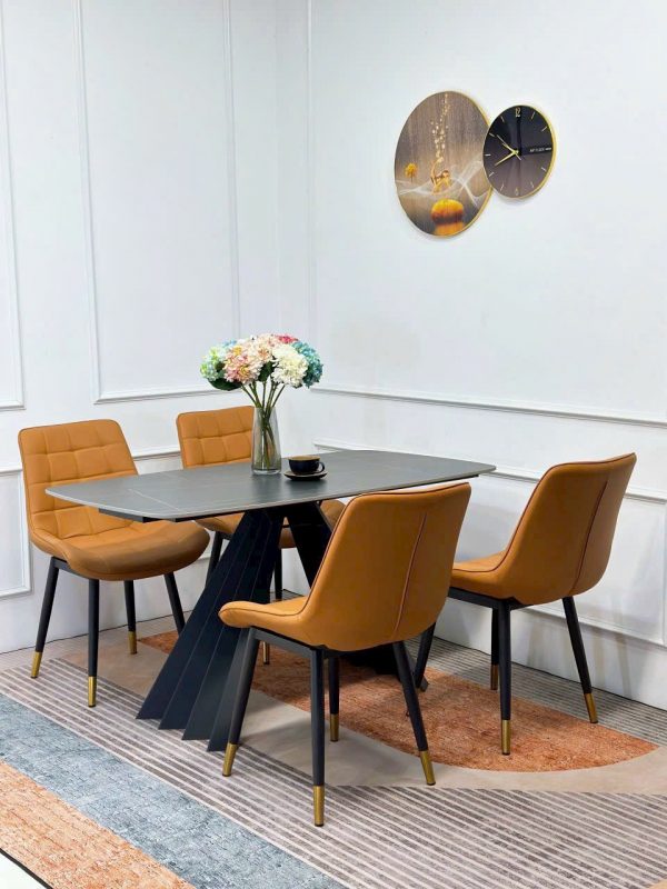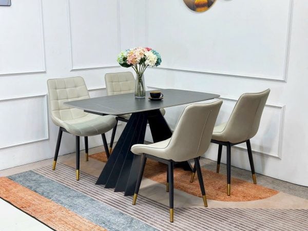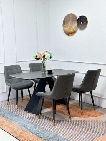 Bộ bàn ăn mặt đá Ceramic chân sắt sơn đen tĩnh điện
