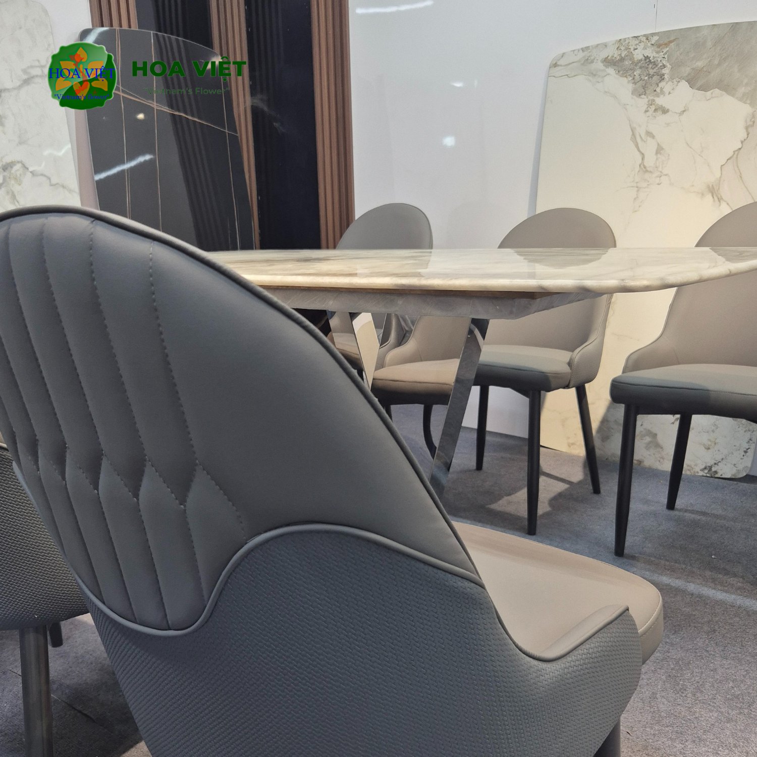 ✔ Chân bàn: Làm từ inox mạ cao cấp, tỉ mỉ đến từng chi tiết, mang lại vẻ ngoài thanh lịch và độ bền vượt trội.