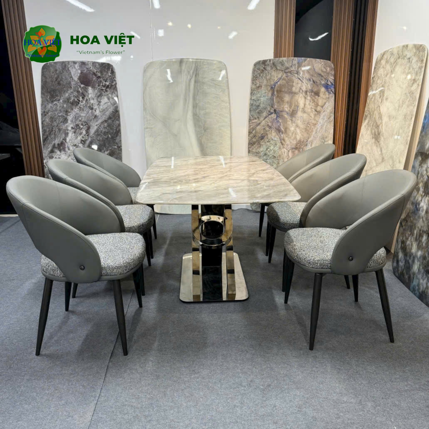 ✔ Chân bàn: Làm từ inox mạ cao cấp, tỉ mỉ đến từng chi tiết, mang lại vẻ ngoài thanh lịch và độ bền vượt trội.