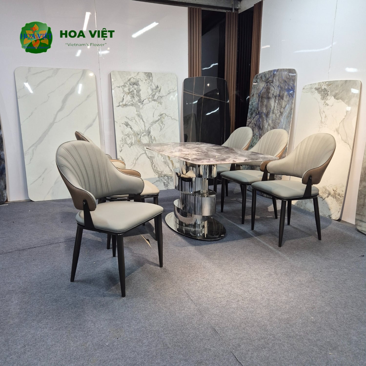 ✔ Chân bàn: Làm từ inox mạ cao cấp, tỉ mỉ đến từng chi tiết, mang lại vẻ ngoài thanh lịch và độ bền vượt trội.