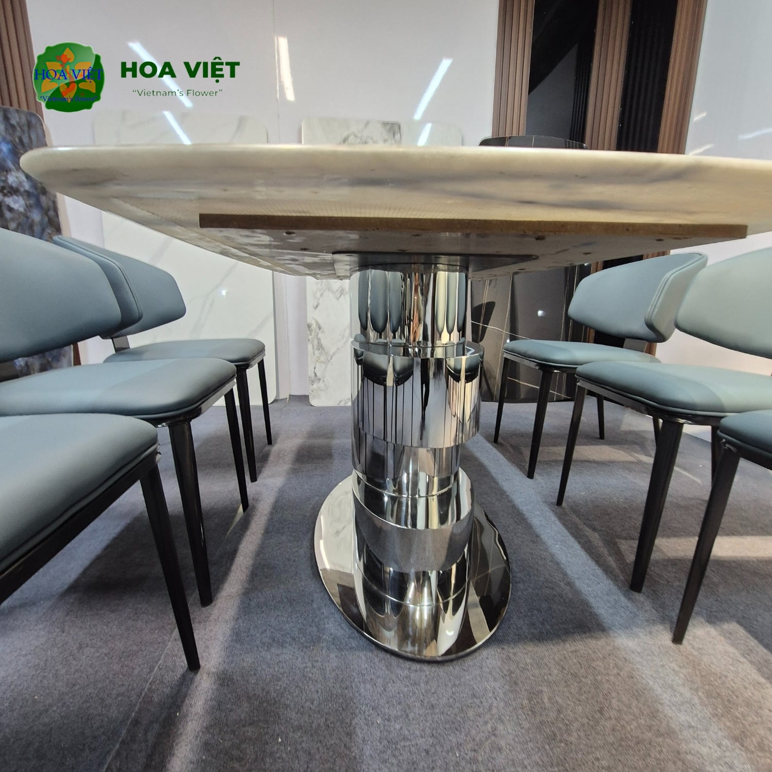 ✔ Chân bàn: Làm từ inox mạ cao cấp, tỉ mỉ đến từng chi tiết, mang lại vẻ ngoài thanh lịch và độ bền vượt trội.