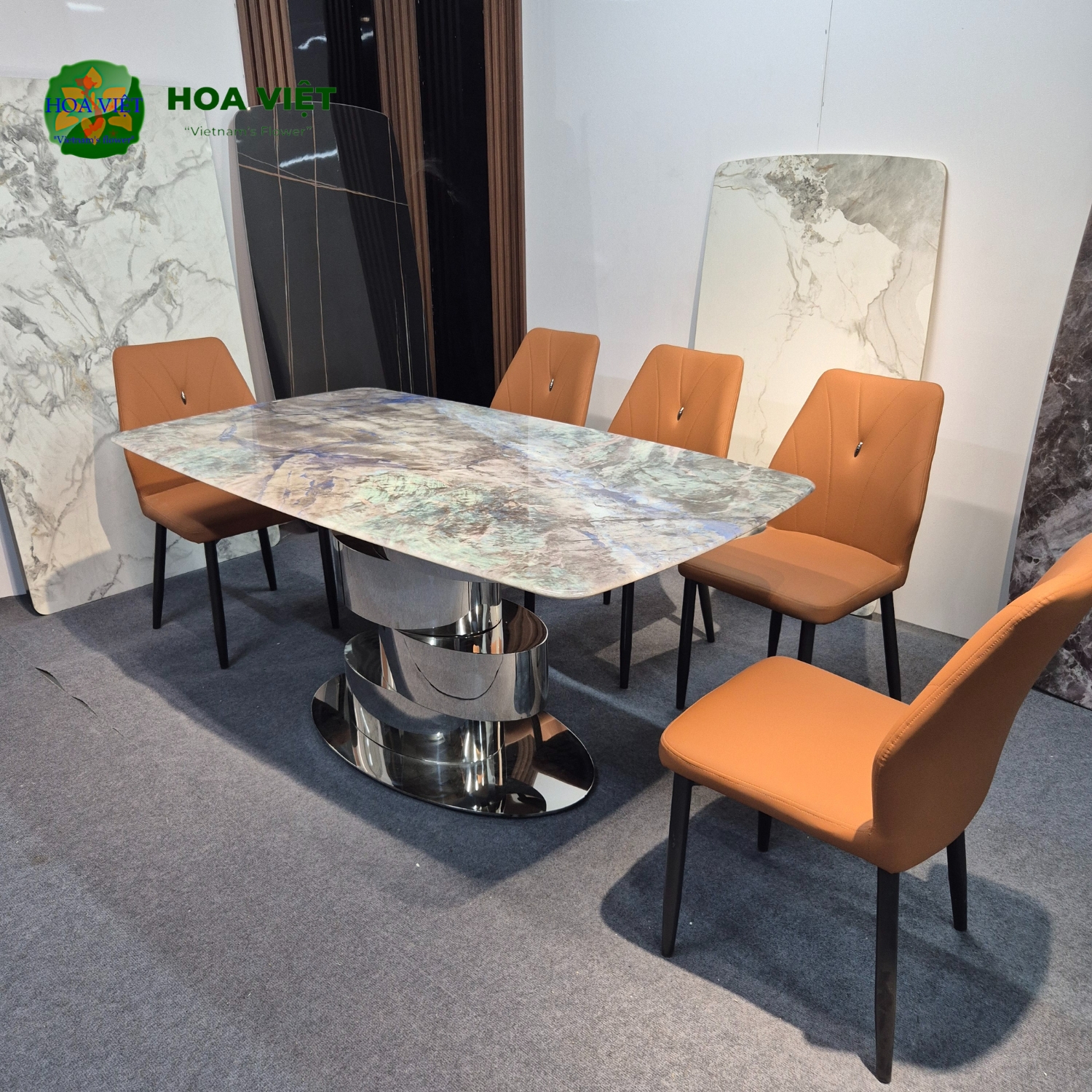 ✔ Chân bàn: Làm từ inox mạ cao cấp, tỉ mỉ đến từng chi tiết, mang lại vẻ ngoài thanh lịch và độ bền vượt trội.