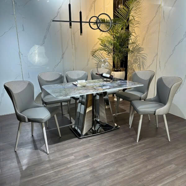 ✔ Chân bàn: Làm từ inox mạ cao cấp, tỉ mỉ đến từng chi tiết, mang lại vẻ ngoài thanh lịch và độ bền vượt trội.