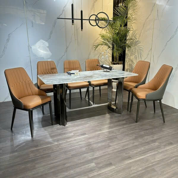 ✔ Chân bàn: Làm từ inox mạ cao cấp, tỉ mỉ đến từng chi tiết, mang lại vẻ ngoài thanh lịch và độ bền vượt trội.