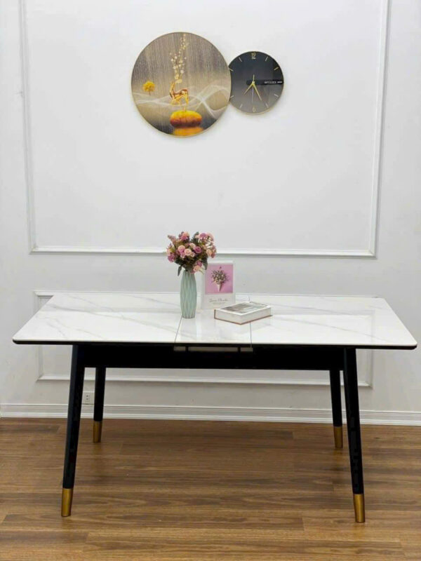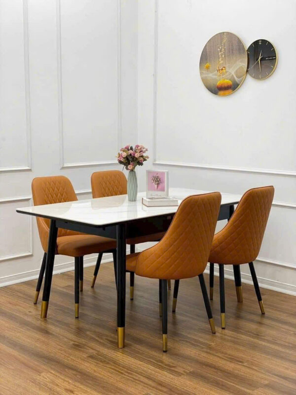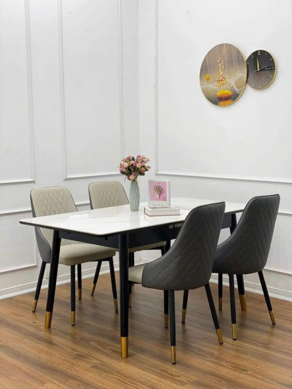 - Bộ bàn ăn mặt đá phiến hiện đại tạo cho không gian phòng ăn gia đình thêm thanh lịch, sang trọng.