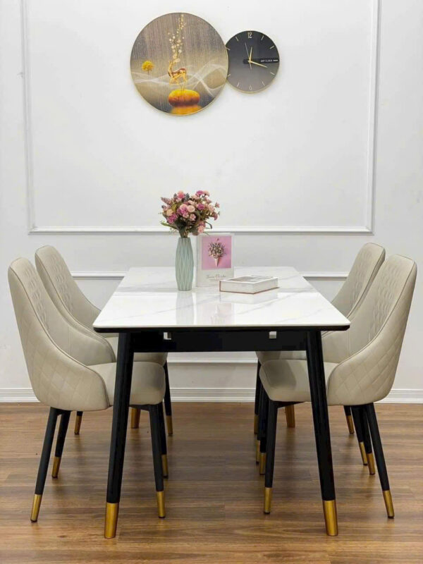Bộ bàn ăn mặt đá Ceramic chân sắt sơn đen tĩnh điện