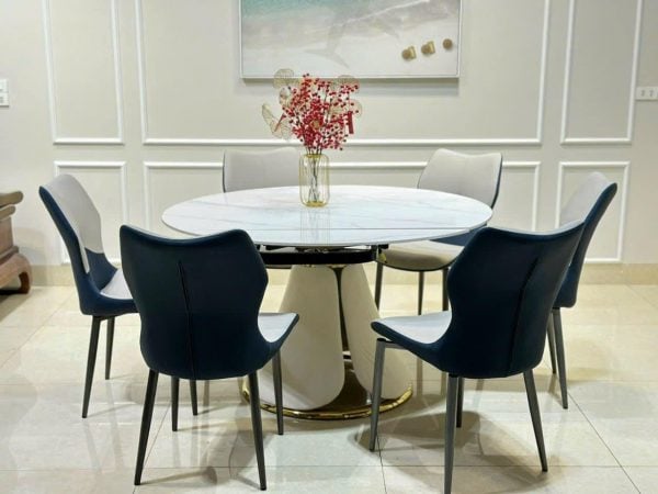 - Bộ bàn ăn mặt đá phiến hiện đại tạo cho không gian phòng ăn gia đình thêm thanh lịch, sang trọng.