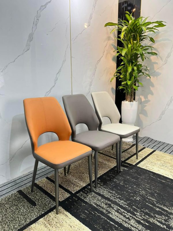 - Ghế ăn bọc da cao cấp ở bề mặt tiếp xúc, chân sắt sơn tĩnh điện