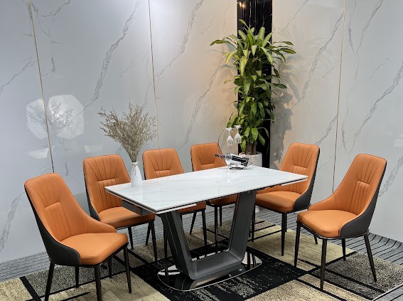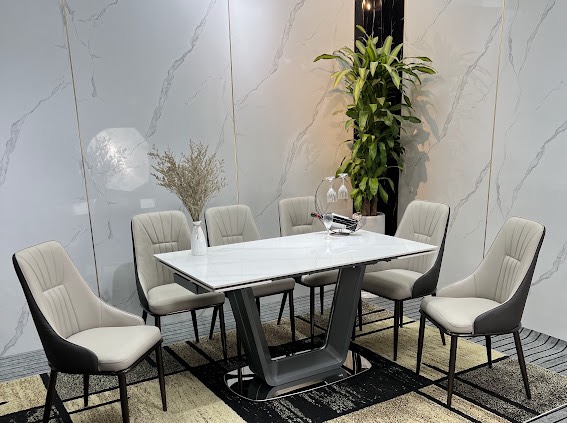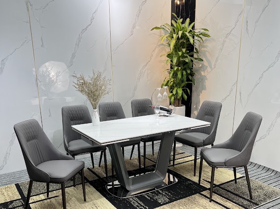 Bộ bàn ăn mặt đá Ceramic chân sắt sơn đen tĩnh điện