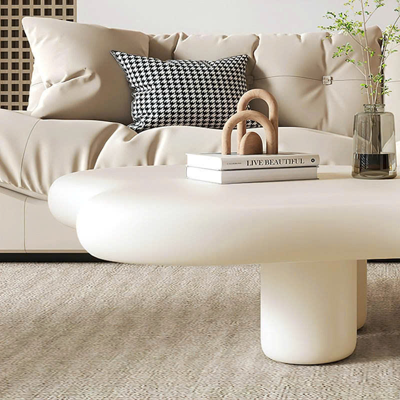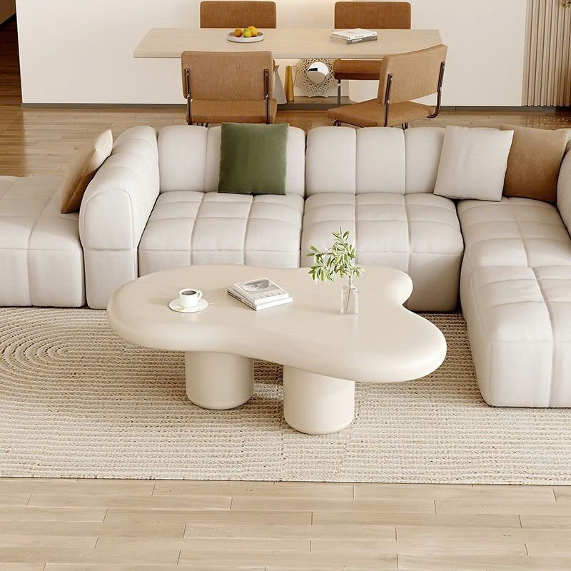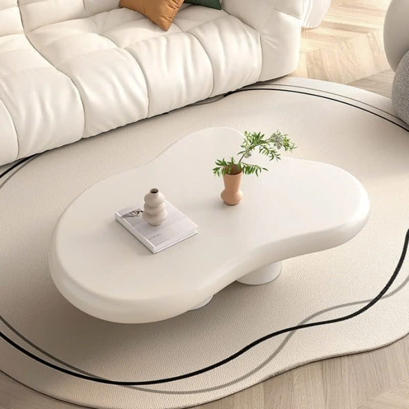 Mặt bàn có hình dạng phi đối xứng, giống như một đám mây hoặc một giọt nước loang mềm mại, mang đến cảm giác tự nhiên và mềm mại.