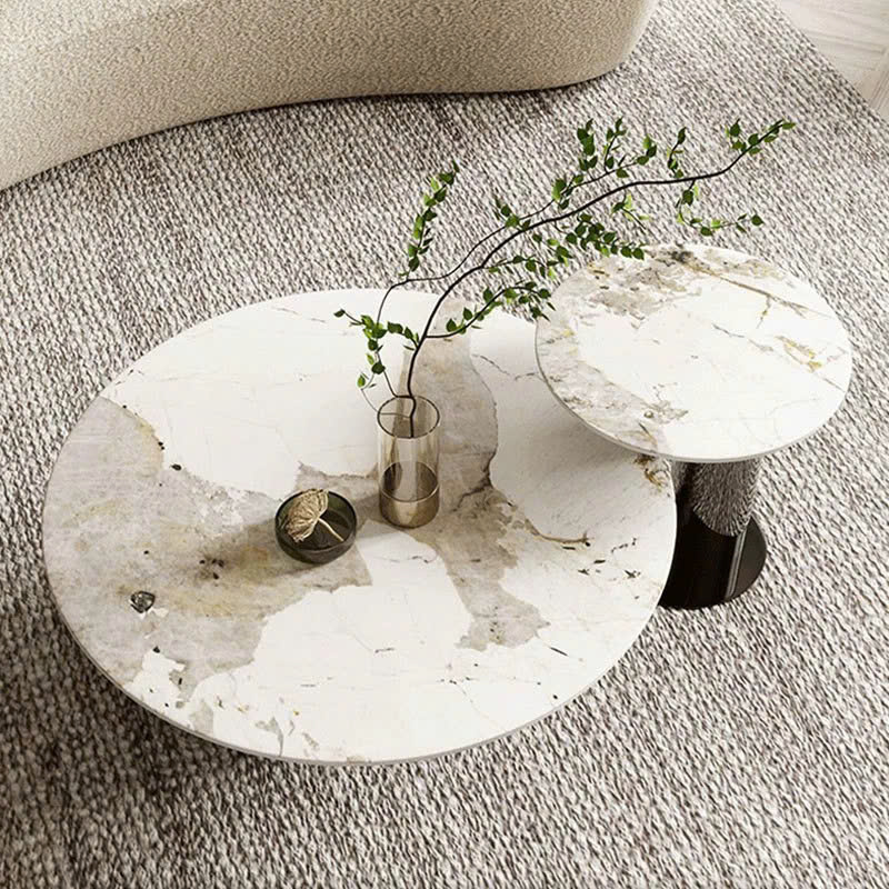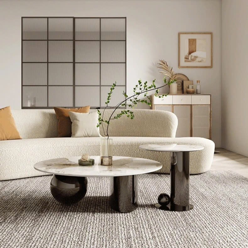 - Bộ bàn trà gồm hai bàn: Một bàn lớn và một bàn nhỏ, thiết kế theo phong cách hiện đại và tối giản.