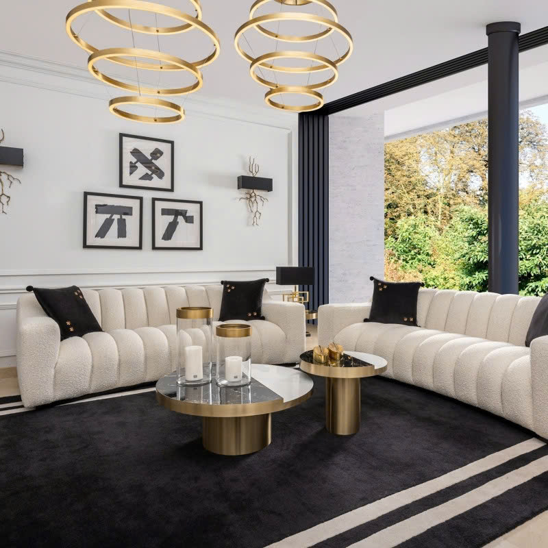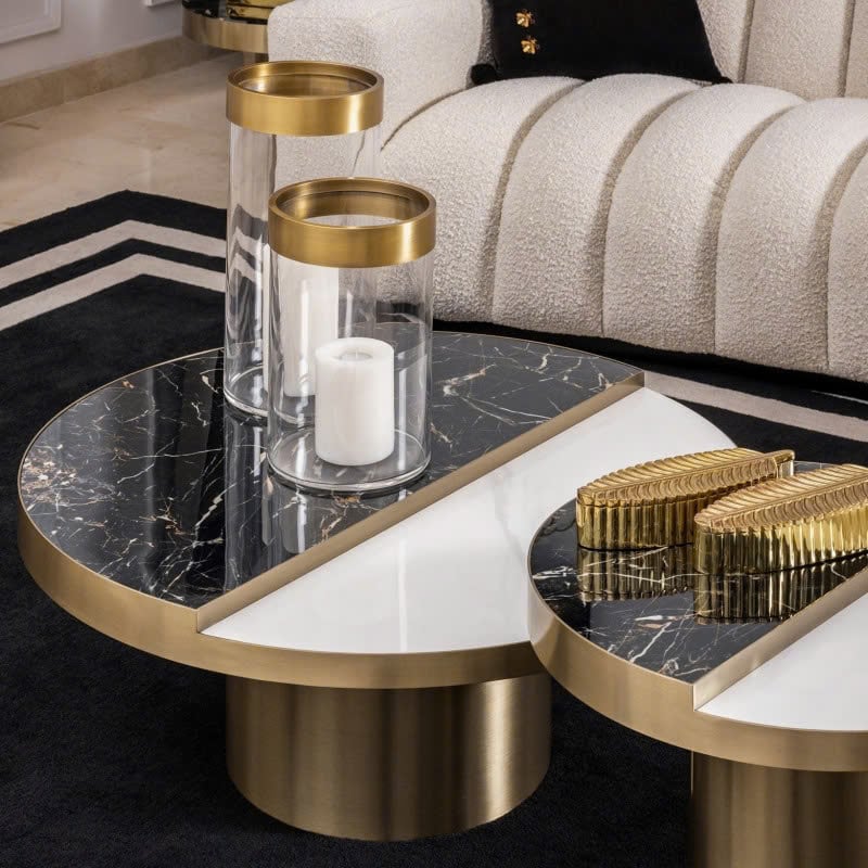 - Bộ bàn trà gồm hai bàn: Một bàn lớn và một bàn nhỏ, thiết kế theo phong cách hiện đại và tối giản.