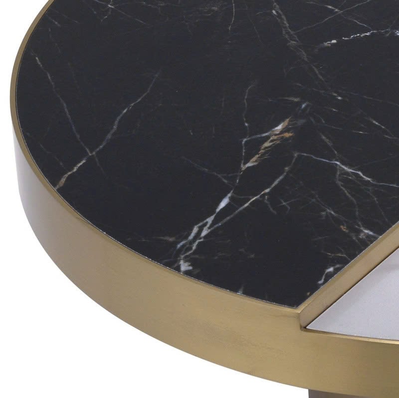 Bàn nhỏ cũng có mặt bàn tròn, chân bàn gồm một trụ hình trụ kết hợp thêm một quả cầu nhỏ tạo điểm nhấn cân đối và lạ mắt.