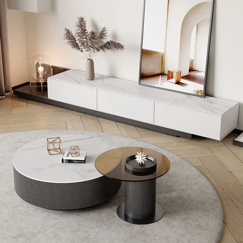 Có thiết kế tròn tinh tế và mặt đá tự nhiên, tạo nên vẻ đẹp thanh lịch và sang trọng cho mọi không gian nội thất. Với sự kết hợp giữa đá tự nhiên và chân sắt mạ PVD, sản phẩm này dễ dàng phù hợp với nhiều phong cách trang trí.