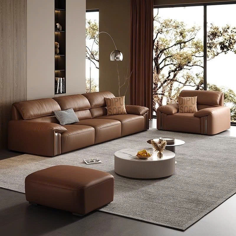• Da cao cấp: Bề mặt sofa được bọc bằng da thật hoặc da simili cao cấp, mang lại cảm giác mềm mại và sang trọng. Chất liệu da có độ bền cao, dễ vệ sinh và chống trầy xước, phù hợp với gia đình có trẻ nhỏ hoặc vật nuôi.