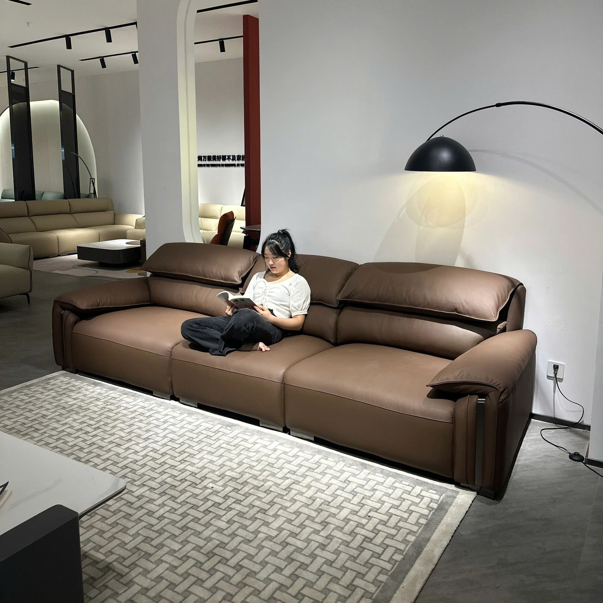 Đệm mút cao cấp và chất liệu da mềm mại mang lại cảm giác thoải mái khi sử dụng. Bạn có thể thư giãn sau một ngày dài làm việc trên chiếc sofa êm ái này.